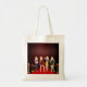 Mode Girls © Sunny Mars Designs. Coole, niedliche, moderne, trendige, mädchenhafte, erschwingliche Stofftasche mit der Silhouette von vier prächtigen jungen glamourösen weiblichen Modedivas oder Models modellieren und posieren in ihren stilvollen Outfits auf dem roten Teppich.