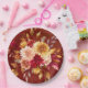 Dunkelrote und gelbe Dahlia-Blume Hochzeit Pappteller