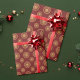 Gold Kreise und Punktmuster auf einem dunkelroten Hintergrund. Es stehen passende Geschenketiketten zur Verfügung.
