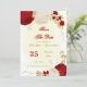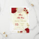 Romantische dunkelrote und weiße Blume mit goldenen Blätter botanische Save the Date Einladung Die Details des Glitzer werden simuliert.