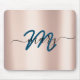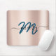 Dunkeltürkis. Blue Rose Minimal Name Monogram. Lux Mousepad