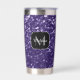 Dunkelviolett, lila Glitzer Glitzern Monogram Thermobecher