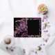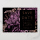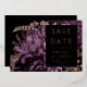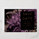 Diese elegante, launische Hochzeit Save the Date-Karte bietet ein üppiges, romantisches Blumenstrauß lila mit Rose Gold Imitate Folie und Glitzer Blattwerk auf einem schwarzen Hintergrund. Passen Sie den Goldfolientext der echten Rose in stilvollen Schriftart auf einem schwarzen Rechteck an, und fügen Sie die URL Ihrer Hochzeitswebsite zum schwarzen Schwarz-Rücken hinzu.