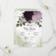 schöne romantische, düstere und hellviolette Blumen und grüne Blätter botanische Vegetation Save the Date Einladung