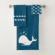 Dunkle Aquamarine Cartoon Whale Nautical Costal Badhandtuch Set