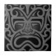 Dieser symmetrische graue und schwarze Maskenentwurf wird durch die Kunst der Azteken inspiriert. Das Bild sitzt auf einem reinen schwarzen Hintergrund, der einen subtilen Kontrast auf der Oberfläche dieser Fliese schafft. Mit ihm ist der Mund, der etwas offen ist und die fast geschlossenen Augen, diese aztekische Maske hat einen stilvollen Blick der alten Klugheit.