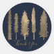 Dunkle blaue und goldfarbene Waldbaumen Rustikale Runder Aufkleber