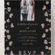 Überraschen Sie Ihre Freunde und Familie mit diesen modernen, trendigen und allesamt in einer Hochzeitsfeier mit Wildblumen, schwarzem Hintergrund, Ihrem individuellen Foto, Text & QR Code. Fügen Sie einfach Ihre eigenen Daten hinzu, indem Sie auf die Option "Personalisieren" klicken.