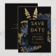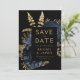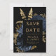 Dunkle florale Navy Blue Gold Hochzeit speichern d Einladung