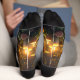 Dieses Kunstwerk besticht durch einen verzierten Schädel, der mit einer königlichen Krone geschmückt ist, inmitten üppiger Weinberge und lebhafter Blume. Flimmernde Kerzen verleihen dem Bild ein mystisches Glühen, das die Szene lebendig macht. All dies ist Set vor einer ruhigen Waldkulisse und schafft ein auffallendes Gleichgewicht zwischen Schönheit und Geheimnis.
