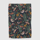 Dieses Golfhandtuch mit Kolibris, Vögeln, Schmetterlingen, Motten, Farnen, Pilzen und Blume auf dunkelblauem Hintergrund.