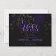 Mit dieser hellen und farbenfrohen dunkelgotischen Lila Blütenhochzeit speichern Sie die Datumsvorlage perfekt für Ihr wichtigstes Event mit Blume, die Blätter in schwarzem Hintergrund abstürzen.