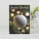 Elegante Weihnachtskarte mit einem nahen Foto eines Golfballschmucks, das an den Ästen eines Weihnachtsbaumes hängt. Kartentexte sind vollständig personalisierbar. Brauchst du Hilfe? Kontaktieren Sie uns für Hilfe personalisieren oder mit Anpassungen. Gute Ferien!