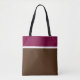 Dieses elegante Design besticht durch einen breiten, dunkelroten Oberstreifen aus Himbeeren, der in Weiß umrissen ist und über einem kräftigen, braunen Farbblock liegt, der den Rest des Designs ausfüllt.