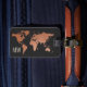 Einzigartiger beruflicher und männlicher kupferner Weltkarten-Gepäckumbau. Wählen Sie eine Hintergrundfarbe aus, bewegen Sie die Karte, ändern Sie die Textfarbe, um Ihr Geschäftseinbrennen, Gepäck oder Lieblingsfarbe zusammenzubringen. Besuchen Sie unser Designer-Geschäft und Sammlung unter Verwendung der Verbindungen unten für zusammenpassende Einzelteile.