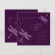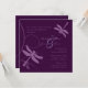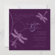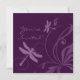 Die Einladung zeigt lila Farbtöne mit schönen Schnörkeln und lavender- oder violett-farbenen Libellen, die den vollständig anpassbaren Text umgeben. UAWG Information Bereich auf Einladung verfügbar, sodass keine Notwendigkeit für zusätzliche UAWG!