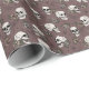 Dieses lustige feminine Gothic-Packpapier wird von Nathalie Portet in schwarzer Tinte gezeichnet und zeichnet sich durch skurrile Skulls und blütenrosa und cremefarbene Rose und Spinnennetze vor einem lila Hintergrund aus dunklem Pflaumen aus.