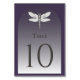 Dunkle Lila Libellenhochzeit Tischnummer