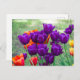 Dunkle lila Tulpen an einem sonnigen Tag im Garten. Das Foto wurde im Juni 2022 aufgenommen. Das Poster ist für die Innenarchitektur geeignet.