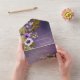 ERHÄLTLICH MIT ODER OHNE QR CODE ODER MIT ODER OHNE AUSWAHL DES ABENDS. Dieses Design zeichnet sich durch einen dunklen, stimmungsvollen lila Galaxiehintergrund aus, der mit einem wunderschönen, blumengeschmückten Spray aus Lavendel, Weiß, Grün und Winkeln aufwartet. Erstellt von der einfachen Farmhouse Press.