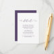 Dunkle lila und weiße Gästekarte mit wunderschönem Kalligrafieschrift.