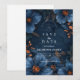 Ein bezauberndes, tief-nachtblaues Hochzeitsdesign, umhüllt von leuchtenden kupferfarbenen Blumen und zarten botanischen Details. Diese immersive, stimmungsvolle Farbpalette schafft eine romantische Dämmerungsatmosphäre, perfekt für elegante Abendhochzeiten oder Paare, die reiche, dramatische Ästhetik lieben. Der aufwendige Rahmen lenkt den Blick auf Ihre Namen und Details und gibt dem gesamten Stück ein luxuriöses, märchenhaftes Gefühl. Eine ausgeklügelte Wahl für moderne Romantiker, die ihre Feier zeitlos und eindrucksvoll gestalten möchten.