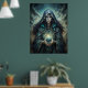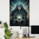 Mit diesem atemberaubenden gotischen Wandbild mit einer dunklen Hexe mit einer glühenden Kristallkugel tauchen Sie ein in eine Welt des arkanen Mysteriums. Umgeben von uralter Energie und verschleiert in Schatten, repräsentiert sie tiefgründige Intuition, Göttlichkeit und femininen Power. Ein perfektes Stück für Halloween, Samhain oder die alltägliche gotische Wohngestaltung. Gedruckt auf hochwertigem Papier, erhältlich in verschiedenen Größen.