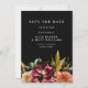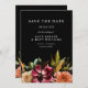 Diese schöne Hochzeit bewahrt die Dattelkarte mit wunderschönen Herbstfloralen auf schwarzem Hintergrund mit eleganter Typografie. Dieses Design ist die perfekte Wahl für eine rustikale und dennoch elegante Spätsommer oder Herbst Hochzeit.