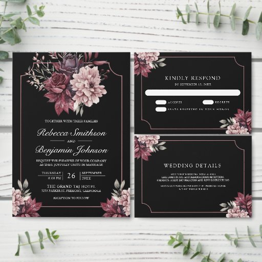 Dark Moody Floral Frame Black WeddingDesignt von Shabbir D
