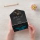 MIT QR CODE ODER MIT ODER OHNE ABENDESCHOICE VERFÜGBAR. Dieses einladende Hochzeitsdesign zeichnet sich durch ein düsteres, launisches Thema aus, das einfach, aber atemberaubend ist. Ein schwarzer Holzkohle-Hintergrund ist die perfekte Leinwand für Ihr persönliches Foto. Ein aquamariner blauer Single sitzt auf der Rückseite, seine Flügel sind für den Flug ausgebreitet. Einzigartig und elegant, kann dieses Design für jede Jahreszeit genutzt werden. Erstellt von der einfachen Farmhouse Press.
