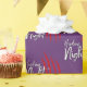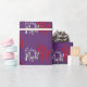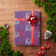 Eine Rolle Verpackungspapier und eine Geschenkboxen. Das Papier zeichnet sich durch einen lebhaften lila Hintergrund aus, der sich durch ein sich wiederholendes Muster scharfer, roter Glaßmarken und den Satz "Howling Night" in fett gedruckter, weißer Schrift auszeichnet. Die Geschenkboxen ist mit dem Howling Night Papier verpackt und mit einem Garnbogen verbunden. Die ästhetische Gesamtkunst ist sprichwörtlich und stilvoll, sie eignet sich hervorragend für Halloween-Geschenkpackungen oder für jede Gelegenheit eine Touch von schändlicher Unterhaltung.