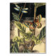 Diese dunkle Naturszene zeigt ein paar Schmetterlinge und eine Libelle, die sich über tiefgrünen Blätter und einer wunderschönen Blume versammeln. Man kann fast das Flügelschlagen hören, während man das Stück studiert. Wenn Sie die Natur genießen, werden Sie dieses Bild genießen. Kaufen Sie Ihre Kopie noch heute!