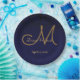Dunkle Navy Blue Gold Floral Wedgram Pappteller