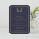 Dunkle Navy/Gold Monogram Laurel Wreath Abschluss Einladung