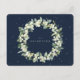 Eine dunkelmarinierte, flache Rezeptionskarte mit elegantem Bouquet/Pose aus handgemalten Snowbeeren und Eukalyptus vorne und einem Kranz auf der Kartenrückseite. Alle Texte sind vollständig editierbar und die verstreuten Punkte auf der Vorder- und Rückseite können vor der Bestellung gelöscht werden, wenn Sie es vorziehen. Diese Karte ist mit alternativen botanischen Designs, in einem Portrait-Format und in verschiedenen Farben erhältlich. Bitte schauen Sie sich die Sammlung in meinem Geschäft an, um alle Optionen und Koordinationsgegenstände zu sehen.