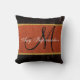 Dunkle Orangen-Burlap-Rustikale Monogramm Kissen