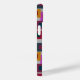 Dieses Handy Gehäuse hat eine geometrische Gestaltung von Quadraten in braun, schwarz, Backstein, gelb, aquamarin, grün, lila, gold, rosa, rot, grau auf einem Feld von leichter grau.