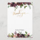 Dunkle Red Burgundy Floral Gold Flat Danke Karte