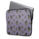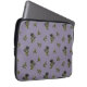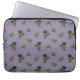 Vintager und gotischer Laptop-Ärmel mit Darstellung von schwarzen Rose mit Grünpflanzen in einem Muster. Der Hintergrund ist lila.