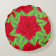 Dunkle rote Kamelien und grüne Blätter Rundes Kissen