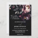 Dunkelmoody noir elegante gothic alles in einer Hochzeit editierbare Vorlage Einladung sofortigen digitalen Download, schwarz burgundy-Peonies auf dunklem Hintergrund (es ist nicht 100% schwarz, falls benötigt etwas, um seine 010102) Hochzeitseinladung mit Hochzeitsdetails und UAWG QR-Code auf der Rückseite