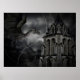 Eine Fantasy-Szene eines Drachen, der bei stürmischen Regenwettern mit einem gotischen Gebäude im Hintergrund fliegt. Dies kann dunkler als gezeigt gedruckt werden.