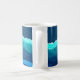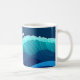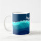 Abstrakte Wellenformen in Blau- und Aquarelltönen auf dunkelblauem Hintergrund schaffen eine schöne und dynamische Tasse. Personalisieren Sie mit Ihrem Namen in kurvigem Text, der der Wellenform folgt.