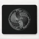 Diese schwarzen und grauen yin Yang-Ausrüstungsbeschreibungen zwei stilisierte Skorpione. Jedes spinnenartige Tier kurvt um den Rand des Risstropfens mit ihm ist der Stinger, der sich zurück in Richtung zum Körper kräuselt. Die Skorpione Pincers werden gerade über dem Kopf gehalten und es ist Beine wird ausgedehnt heraus in eine aggressive Pose. Dieses stilvolle Muster ist ein atemberaubendes Beispiel dieses traditionellen Symbols für die Balance der Natur.