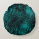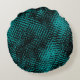 Dunkle zyangrüne Striche kreuzen wie eine Einbeulu Rundes Kissen