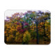 Eine sehr dunkle und einzigartige Aussicht auf Herbstfarben in West Bend, Wisconsin. Schöne Waldlandschaft, voller Rätsel. Foto wurde im Oktober 2014 aufgenommen.