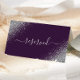 Diese elegante, moderne Hochzeitstisch-Platzkarte für Sitzgelegenheiten bietet einen silbernen Glitzer in den gegenüberliegenden Ecken. Das Wort "reserviert" erscheint in einem silbernen Schriftzeichen mit Swashes vor und nach einem dunklen lila Hintergrund auf beiden Seiten der Karte.