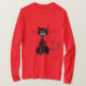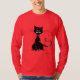 Kundengerechter dunkelblauer Mann lang-sleeved T - Shirt mit einer schlechten zackigen schwarzen Katze, die bereits gelebte acht seiner neun Leben hat. Dieser schlechte Katze T - Shirt würde als Geschenk für jemand groß sein, das Katzen mag und Dunkelheit, Grunge, gotisches Material mag.