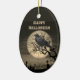 Dieses dunkel gestaltete Halloween-Ornament verfügt über einen spöttischen Friedhofshintergrund, einen Vollmond, eine Silhouette eines Baumes und einen Raven-Vogel. Personalisieren Sie die Rückseite mit Ihren eigenen Worten und ändern Sie das Datum.