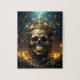 Dieses Kunstwerk besticht durch einen verzierten Schädel, der mit einer königlichen Krone geschmückt ist, inmitten üppiger Weinberge und lebhafter Blume. Flimmernde Kerzen verleihen dem Bild ein mystisches Glühen, das die Szene lebendig macht. All dies ist Set vor einer ruhigen Waldkulisse und schafft ein auffallendes Gleichgewicht zwischen Schönheit und Geheimnis.